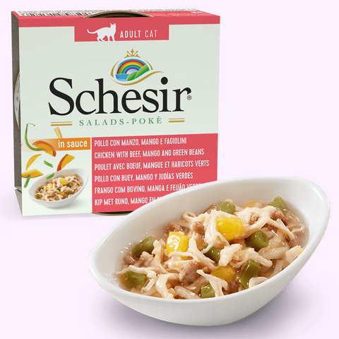 شيزر معلبات سلطة البوكي دجاج واللحم مع المانجو والفاصوليا للقطط البالغة 85 جرام